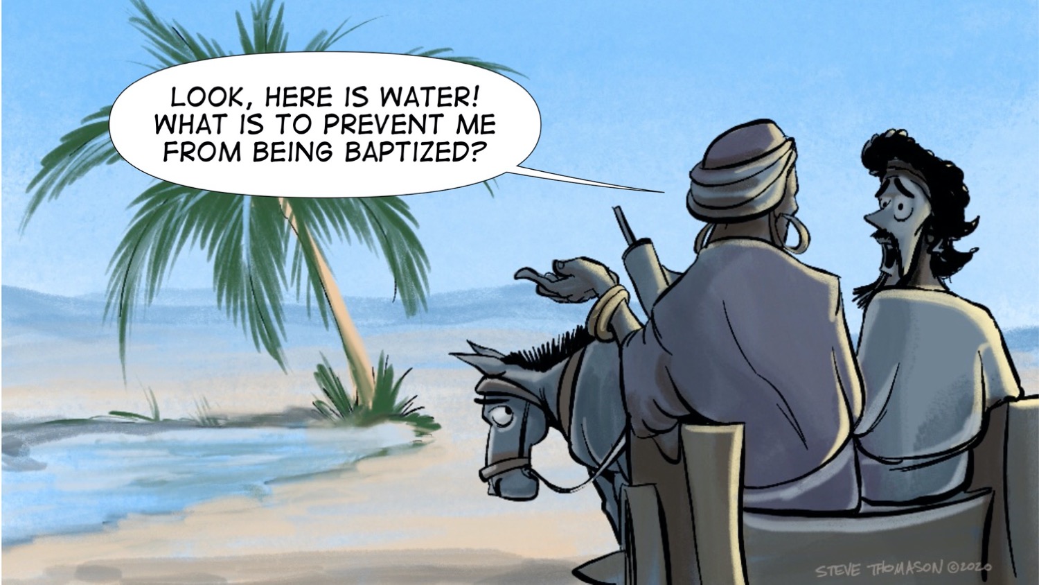 Selain itu, seandainya saudara membaca bagaimana cara Allah mempertemukan Filipus dengan sida-sida dari Etiopia itu (Kis 8:26-30) dan bagaimana Allah secara ajaib melarikan Filipus setelah ia menyelesaikan tugasnya untuk membaptis (Kis 8:39-40), maka seharusnya kita tidak perlu heran jikalau mereka dapat menemukan sejumlah air yang dapat dipergunakan untuk baptisan. Allah tahu kapan dan dimana waktu yang paling tepat untuk mempertemukan mereka sehingga setelah pembicaraan tentang baptisan selesai dilakukan, segera mereka dapat menemukan sejumlah air yang dimaksud. Amin...